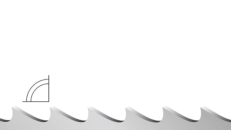 The free-cutting action of the band saw blade is achieved by means of the tooth set, where the teeth protrude alternately left and right beyond the blade body.